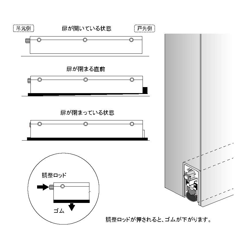 - 高い気密性、遮音性が得られ、扉を閉めるときの衝撃音も抑えます。